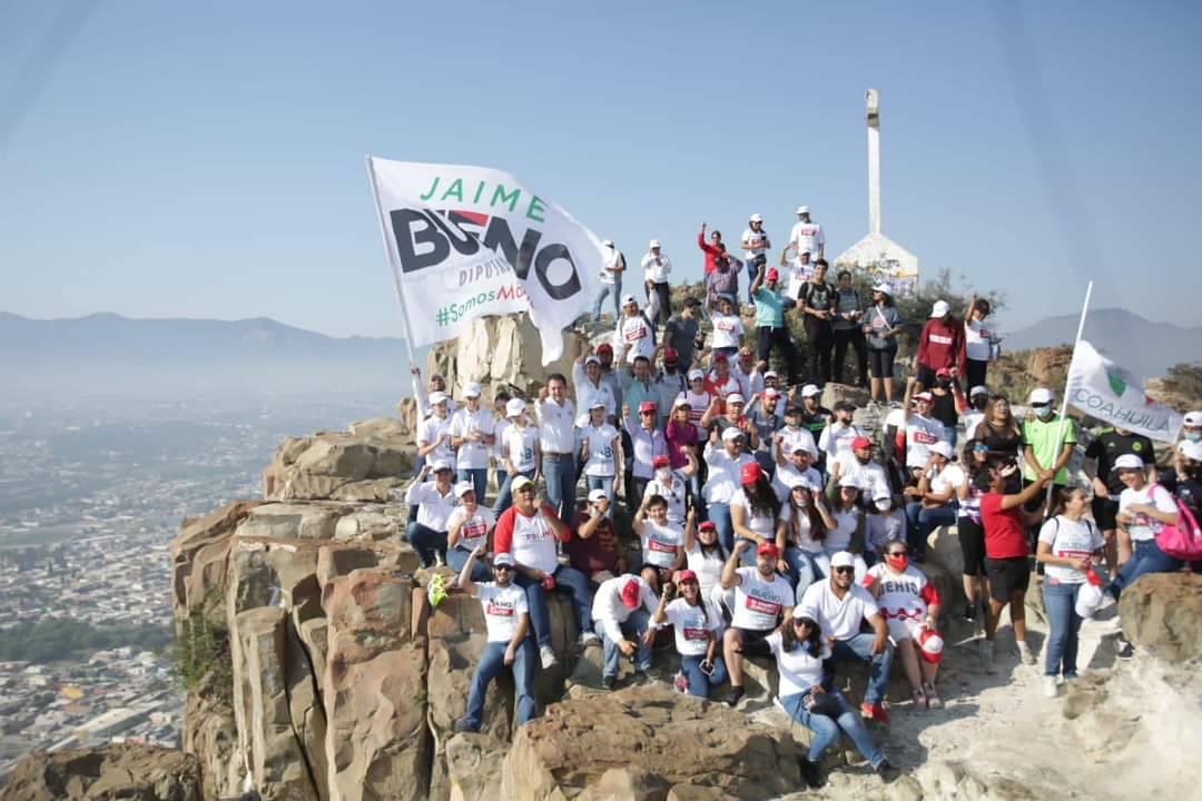 Como parte de las actividades de la recta final de su campaña, el candidato del PRI a Diputado Federal por el séptimo distrito, Jaime Bueno Zertuche, realizó una caminata por el Cerro del Pueblo, emblemático lugar de Saltillo, acompañado de su familia, equipo de trabajo y amigas y amigos, donde refrendó su compromiso de trabajar día a día por el bienestar de la población coahuilense.