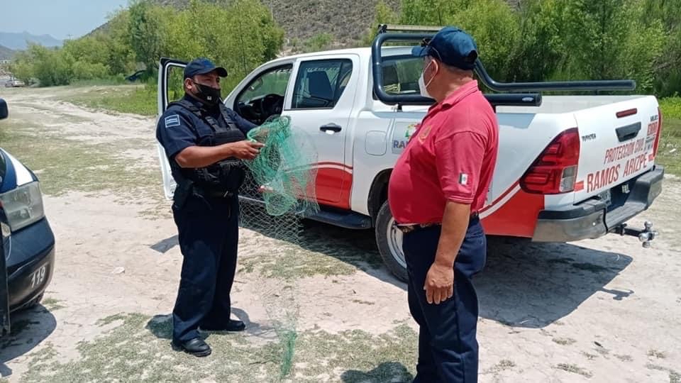 En coordinación con personal de Policía Municipal y Ambiental, la dirección de Protección Civil de Ramos Arizpe retiró una tarraya para pescar, debido a que esta actividad con ese tipo de red está prohibida, de acuerdo a la normatividad municipal.
