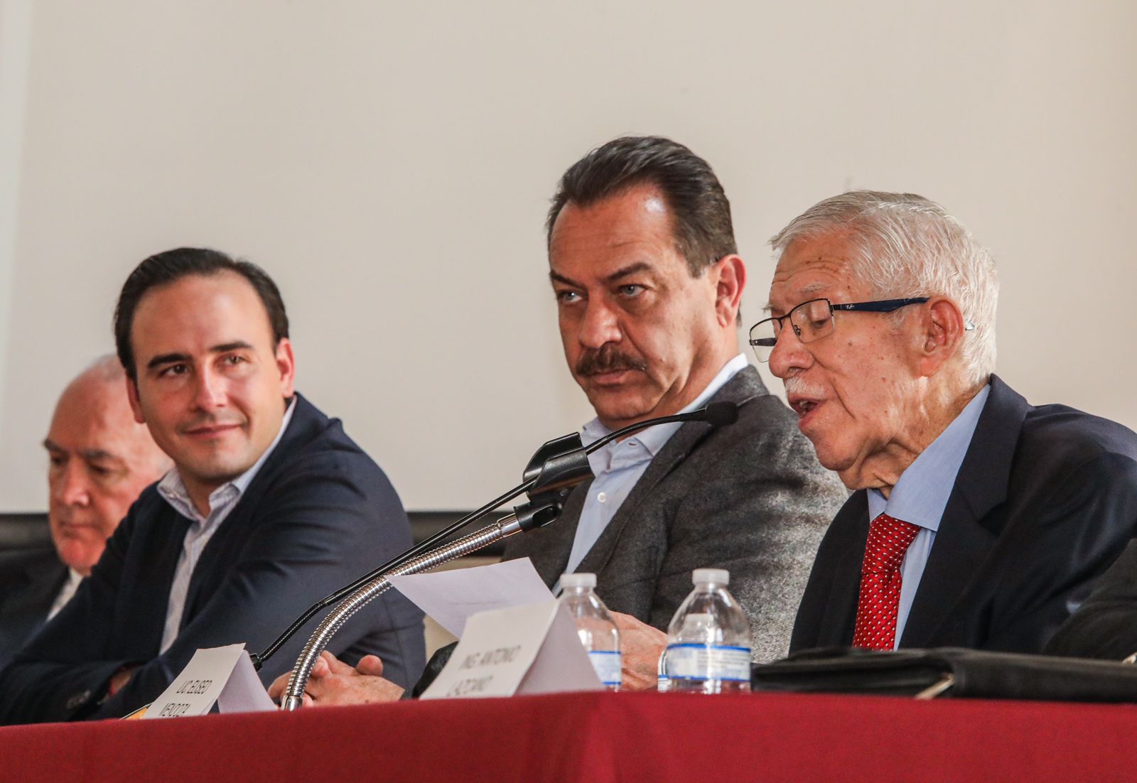 Acompañaron a don Eliseo, en el estrado, el alcalde de Saltillo, Manolo Jiménez Salinas y el secretario de Gobierno, Fernando de las Fuentes Hernández.