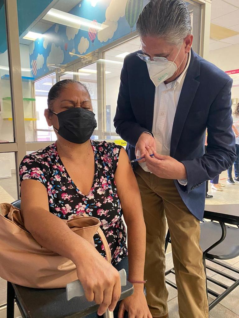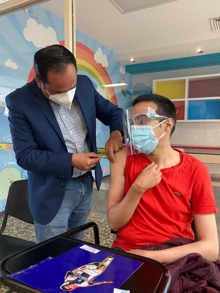 Bernal Gómez, acompañado por el Jefe de la Jurisdicción Sanitaria No. 8, Eliud Aguirre Vázquez, y por el Director del Hospital General de Saltillo, Jorge Bill Soto Almaguer, aplicaron un total de 50 vacunas a pacientes que integran la Asociación EMYLA.