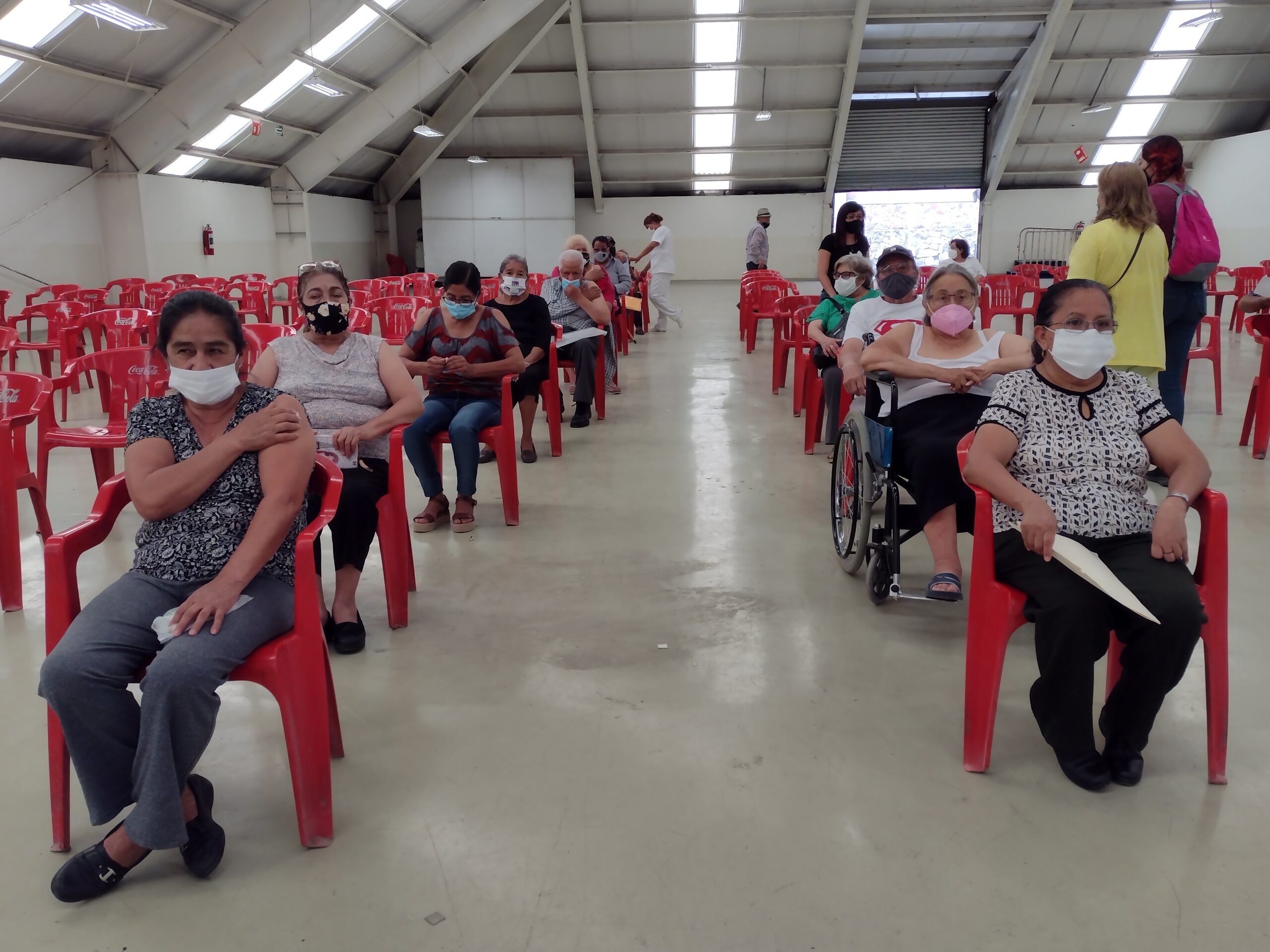 Este sábado, cientos de saltillenses aprovecharon el último día de la aplicación de la segunda dosis de la vacuna contra la Covid-19 para personas con 60 años y más, en la sede de Canacintra.