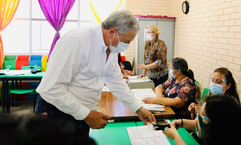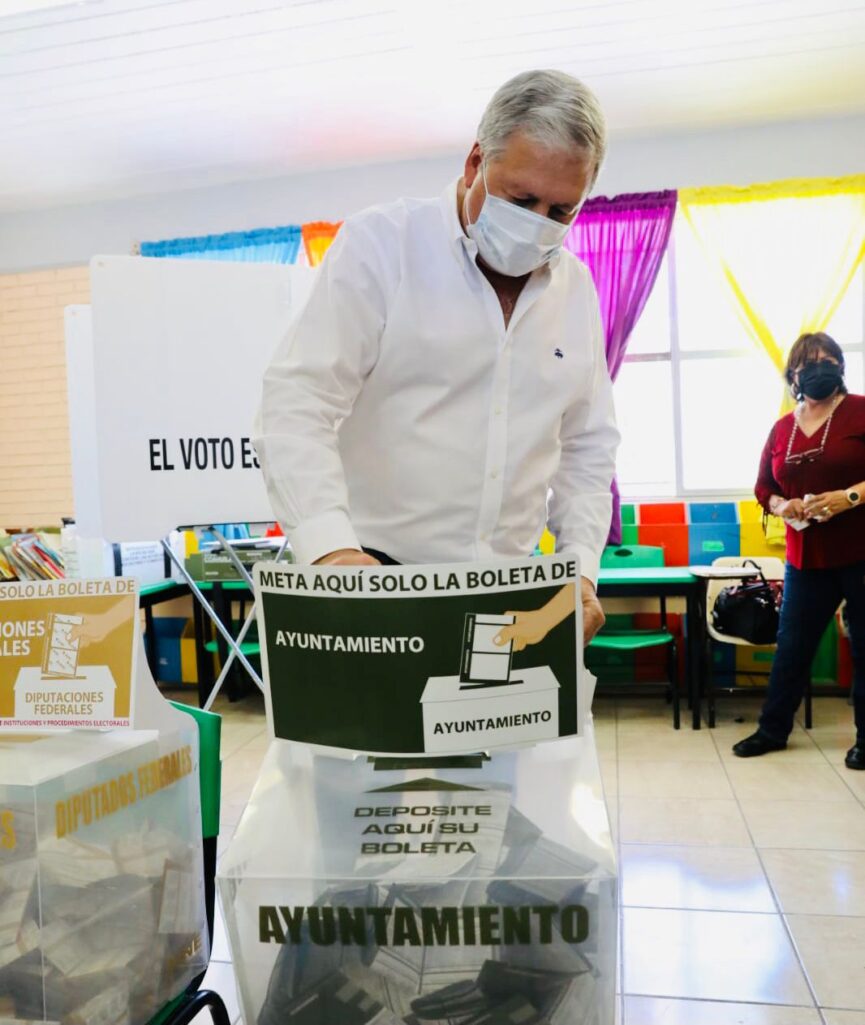 El candidato de la coalición PRI – PRD Chema Fraustro, emitió la mañana de este domingo su sufragio acompañado por su esposa Beatriz Dávila de Fraustro, sus hijos y nietos.