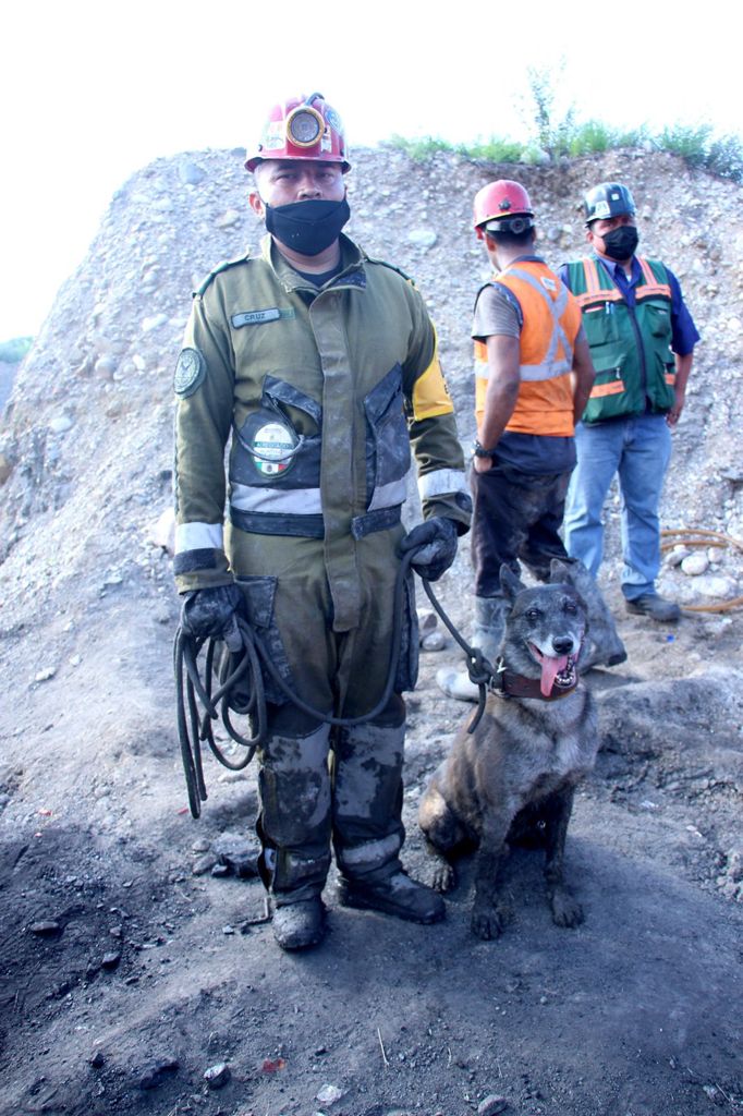 Binomios caninos pertenecientes a la Guardia Nacional se incorporaron a la búsqueda de los tres mineros que aún se encuentran atrapados en alguna de las últimas galerías que componen la mina.