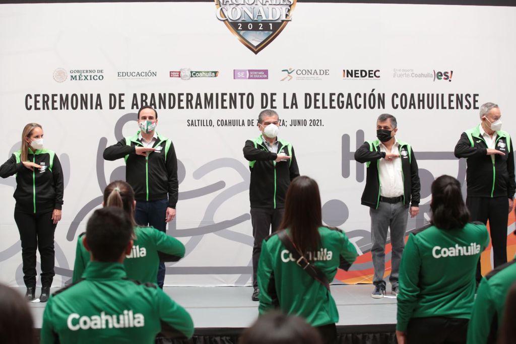 Por su parte, Alina Garza Herrera, Directora General del Instituto Estatal del Deporte de Coahuila (INEDEC) informó que esta delegación que participará en los Juegos Nacionales Conade 2021 a partir del 15 de junio, está conformada por 422 atletas de 28 diferentes disciplinas.
