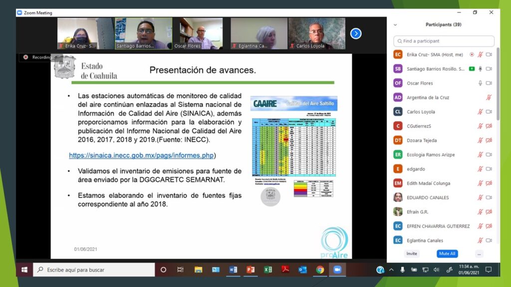 Como parte de los compromisos establecidos en las acciones del Programa para Mejorar la Calidad del Aire (ProAire) del Estado 2017-2026, el pasado 1 de junio se llevó a cabo de manera virtual a través de la aplicación ZOOM la primera reunión 2021 del Comité Núcleo del ProAire.