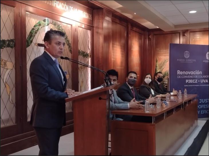 «Refrendar el compromiso de la Universidad Vizcaya de las Américas de ser una institución aliada, amiga, comprometida, fiel creyente de la justicia en México y, sobre todo, de la justicia que acertadamente se imparte en el estado de Coahuila», dijo Jorge Richardi Rochin, rector de la Universidad Vizcaya, durante el evento que tuvo por sede al Palacio de Justicia en la capital coahuilense.