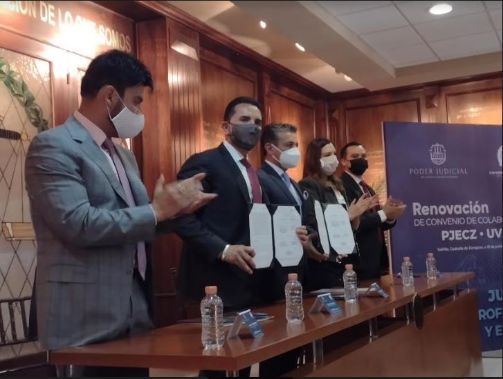 La tarde de este martes, el Poder Judicial de Coahuila y la Universidad Vizcaya de las Américas renovaron el convenio firmado hace poco más de un año entre ambas instituciones, con la finalidad de que trabajadores y familiares directos del primer organismo obtengan entre 20 y 30 por ciento de descuento en mensualidades para estudiar en cualquiera de los campus de este complejo educativo instalados en Saltillo, Acuña, Monclova, Piedras Negras y Torreón.