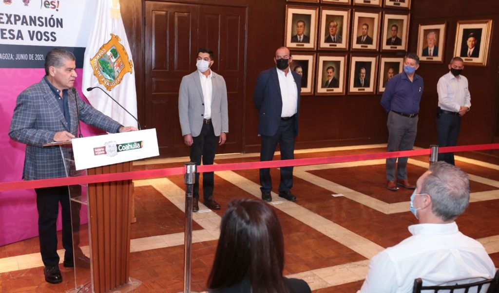El gobernador Miguel Ángel Riquelme Solís anunció la expansión de la empresa de origen alemán Voss Automotive México, en la que se invertirán 6 millones de dólares.
