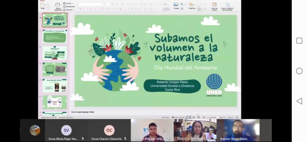 La conferencia inaugural del Conversatorio “La educación ambiental en tiempos de virtualidad”, fue presentada por el extensionista investigador del Centro de Educación Ambiental (CEA) de la Vicerrectoría Académica de la UNED, Óscar Chacón Chavarría, quien expuso a los participantes sobre la importancia de la generación del conocimiento a partir de la información existente y participación ciudadana en temas ecológicos y que, con el uso de distintas herramientas tecnológicas y de realidad aumentada, coadyuvan al aprendizaje sobre el medio ambiente.