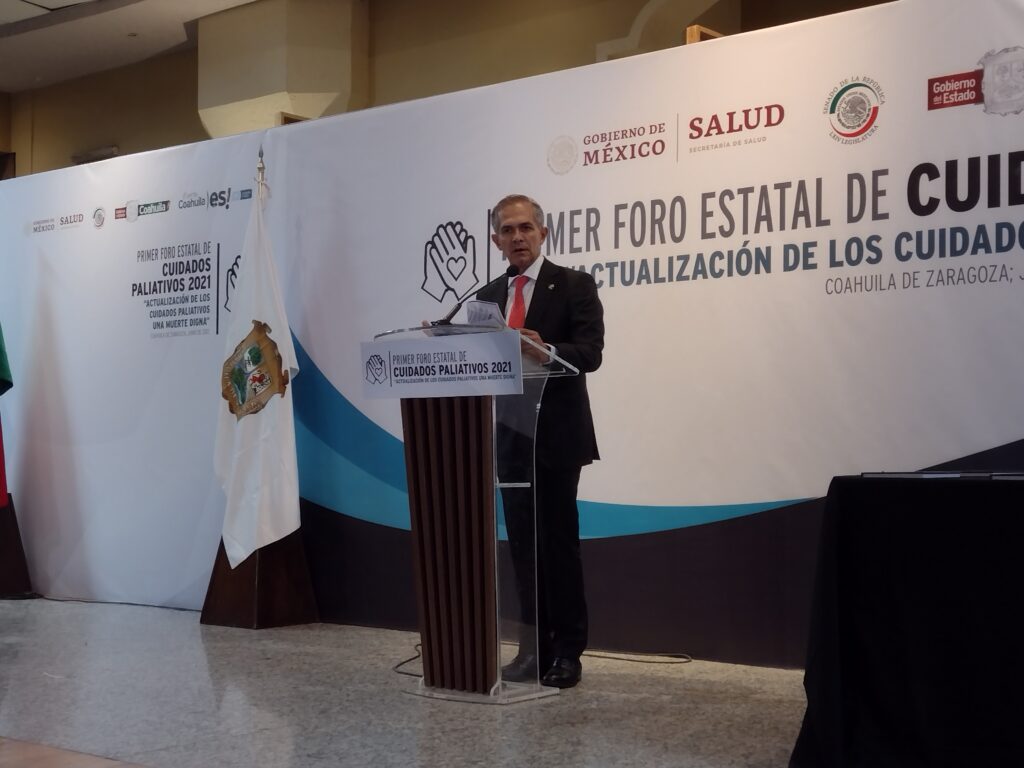 Este jueves, el funcionario federal visitó Saltillo para acompañar al secretario de Salud, Roberto Bernal Gómez, al arranque del Primer Foro Estatal de Cuidados Paliativos que tuvo como sede las instalaciones de Villa Ferré. (OMAR SOTO / EL HERALDO)