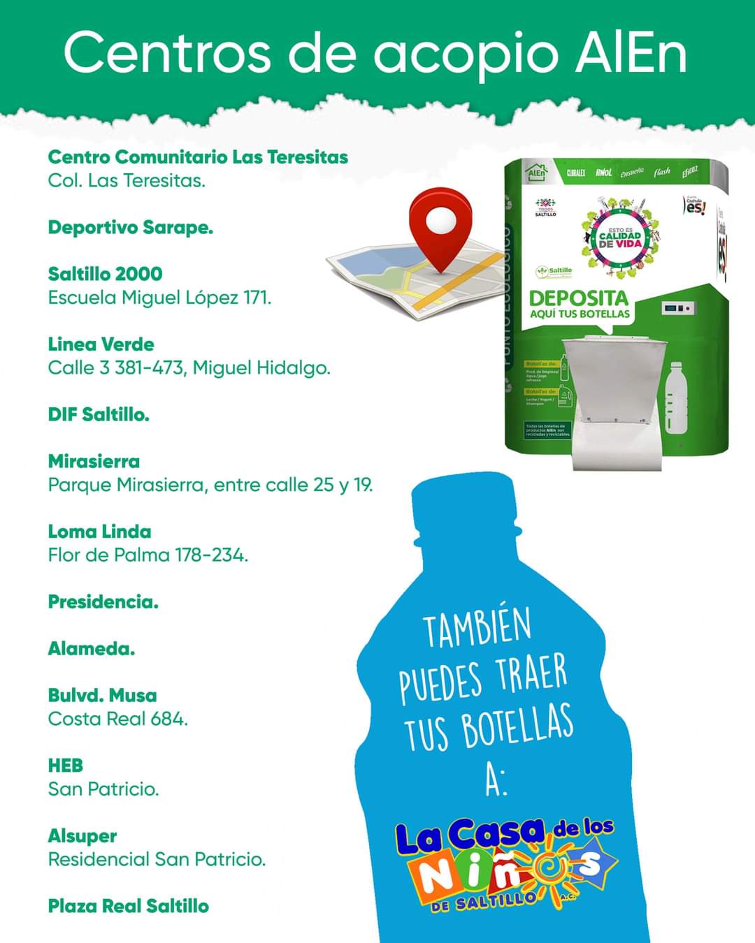 La coordinadora de Desarrollo Institucional de la Casa de los Niños de Saltillo, María Jimena López, dijo que hasta el momento la respuesta de la población de esta capital a la campaña de recolección de PET que se lleva a cabo en beneficio de esa institución con el apoyo de Grupo AlEn, no ha sido la esperada, dada la poca cantidad de material que se ha recibido en los 13 módulos colocados para tal efecto en diferentes puntos de Saltillo.
