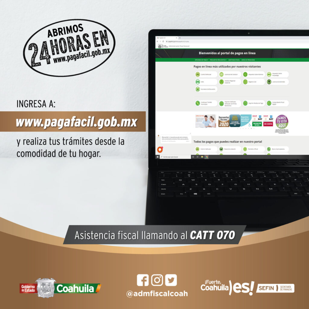 La Administración Fiscal General de Coahuila (AFG) invita a los contribuyentes a realizar sus trámites a través de su portal web de Pagafácil.