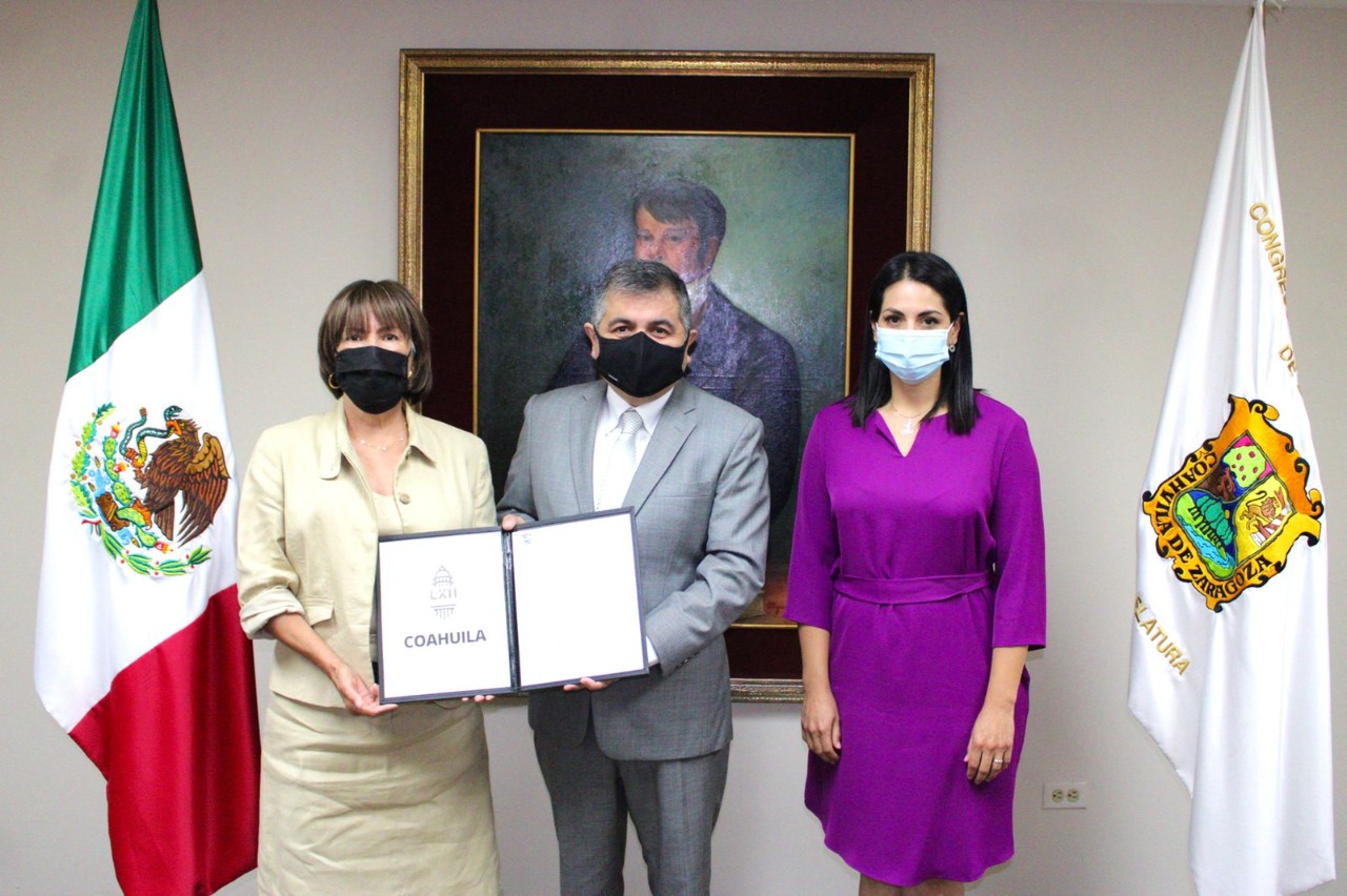 El Presidente de la Junta de Gobierno del Congreso del Estado de Coahuila, Eduardo Olmos Castro, acompañado de la diputada Luz Elena Morales Núñez, coordinadora de la Comisión de Igualdad y No Discriminación, realizó la entrega del nombramiento como titular de la Unidad de Género a Laura Elena Martínez Rivera, que entre sus funciones tendrá la de impulsar e incorporar la perspectiva de género en el quehacer legislativo.
