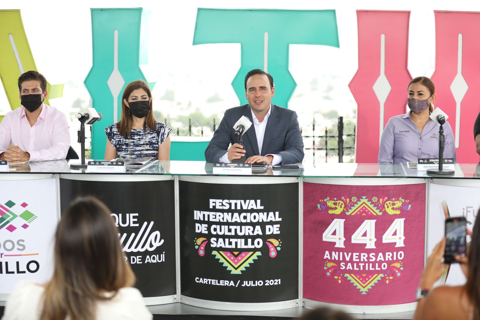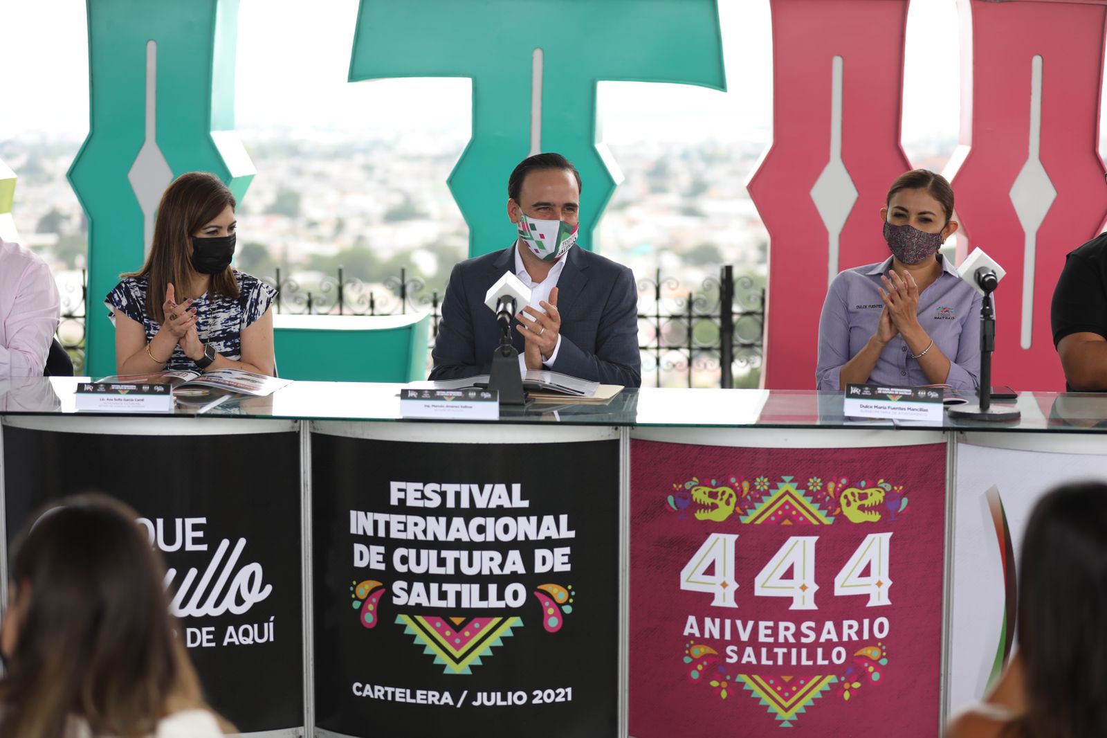 Dentro del marco del 444 aniversario de la ciudad, el alcalde Manolo Jiménez Salinas anunció la cartelera de actividades del Festival Internacional de Cultura Saltillo 2021, que contará con la participación de mil 351 artistas en 41 eventos en 13 diferentes sedes.