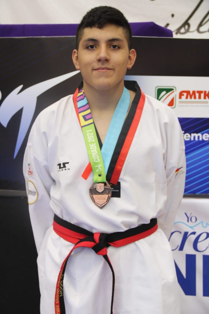 El taekwondoín coahuilense Julián Alejandro Heredia Martínez ganó la medalla de bronce en la categoría Cadete, en la división de los 65 kg.
