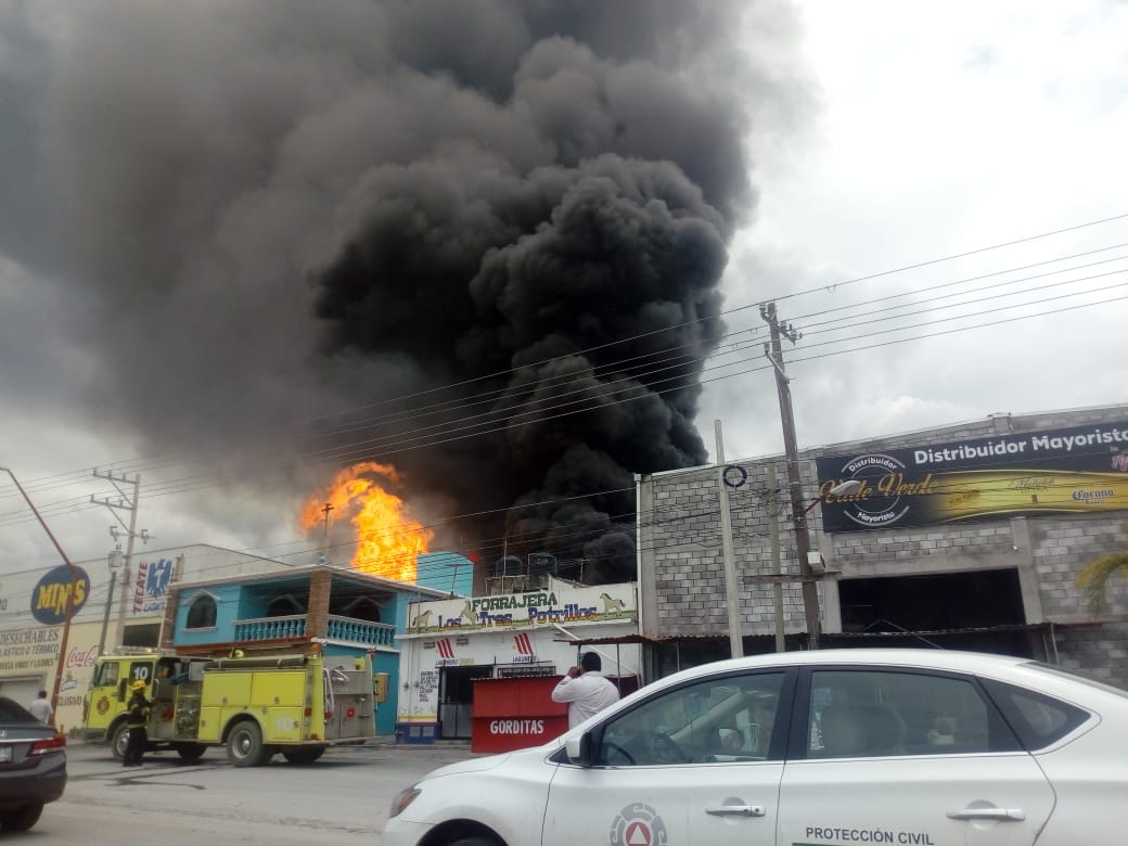 La Subsecretaría de Protección Civil de Coahuila informó que en el incendio en una bodega del oriente de Saltillo no hay personas lesionadas.