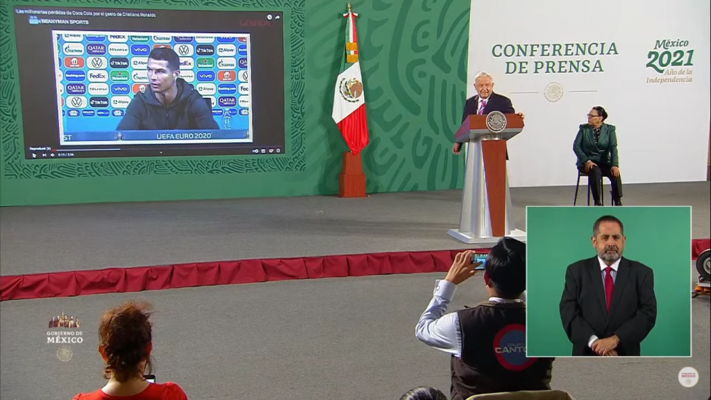 Ciudad de México.- El presidente Andrés López r hizo referencia este miércoles al futbolista Cristiano Ronaldo, quien en una conferencia de prensa rechazó unas botellas de refresco y señaló una de agua.