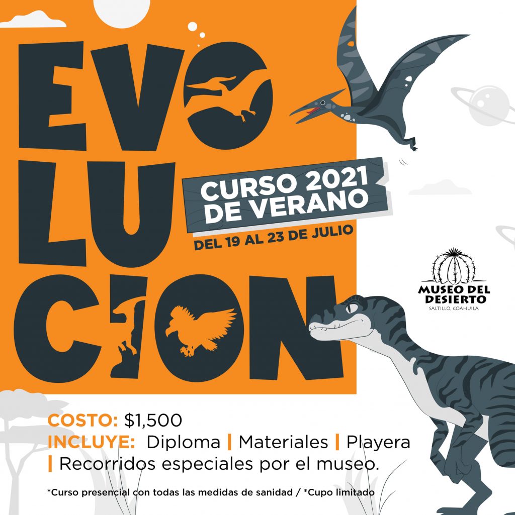 Con el fin de promover conocimientos relacionados con la paleontología, arqueología, flora y fauna de zonas desérticas, el Museo del Desierto (MUDE) en Saltillo invita a niños de 5 a 11 años a su Curso de Verano «Evolución», que se realizará del 19 al 23 de julio en sus instalaciones de 9:30 de la mañana a 1:30 de la tarde.