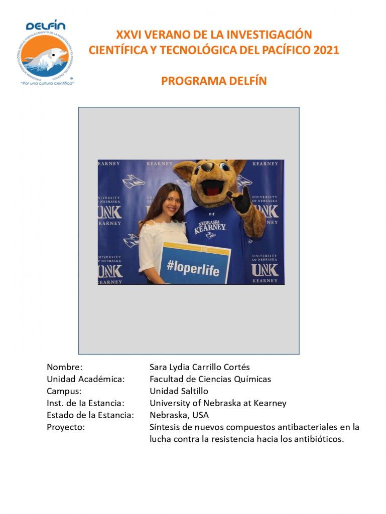 En el área de Biología y Química participan ocho alumnos de la Facultad de Ciencias Químicas US: José Isaac Arias Uribe, Sara Lydia Carrillo Cortés, Liliana Sofía Farías Vásquez, Alessandra Martínez Cruz, Lucía Martínez Hernández, Evelyn Isabel Mendo González, Celia Mujica Peñaloza y Karen Onofre Rentería, quienes ya se encuentran desarrollando sus propuestas de investigación en el Instituto Politécnico Nacional, Universidad de Guadalajara, UNAM, Universidad Politécnica de Tecámac, Centro de Investigación y Estudios Avanzados, Benemérita de Puebla y en la Universidad de Nebraska.