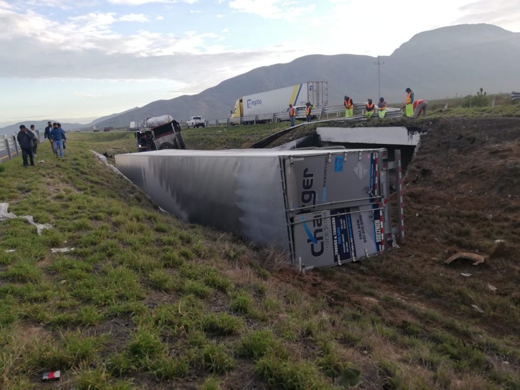 Los hechos se registraron en el tramo Puerto México – Ojo Caliente, cuando el trailero se desplazaba a exceso de velocidad en la pesada unidad de la empresa Fletes del Norte con dirección a Monterrey, siendo que al llegar al kilómetro 17 perdió el control.