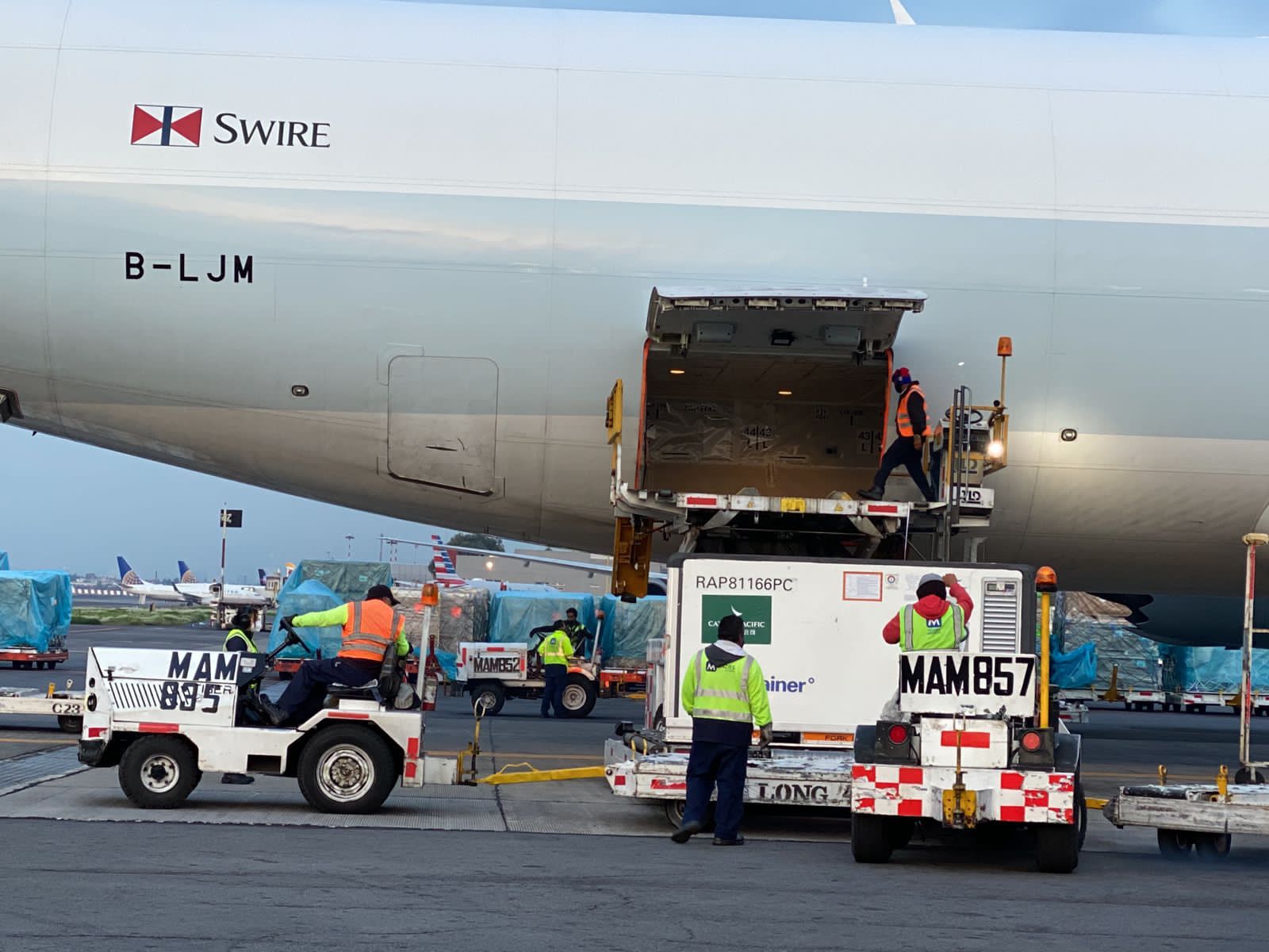 Por su parte, la Secretaría de Salud dio a conocer que, con este embarque, México suma seis millones 46 mil 390 biológicos recibidos sólo en esta semana de Pfizer, CanSino, Astra Zeneca y Sinovac.