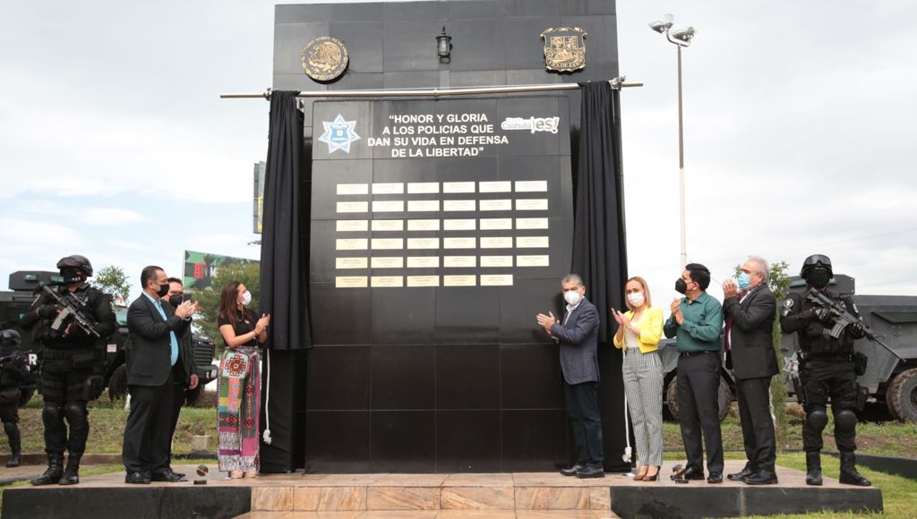 Reconoció y agradeció a todos los elementos de seguridad por su entrega, compromiso y valentía, y mencionó que el “Muro de Honor y Gloria” que este día se develó, honra a todos aquellos quienes dieron su vida en defensa de la libertad.