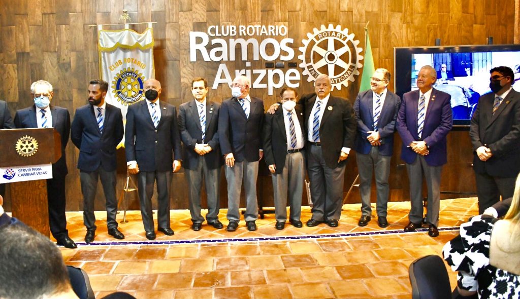 En Ramos Arizpe se llevó a cabo la ceremonia de toma de protesta de la nueva mesa directiva 2021-2022 del Club Rotario de esta ciudad, en un acto protocolario se anunció la salida del ex presidente en su periodo 2020-2021 Roberto Peredo Hernández y su señora esposa María Elena Lozano y con los debidos honores se dio paso al ingreso del nuevo presidente, Mario Alejandro Aguirre Rangel y su esposa Deisy Valdés.