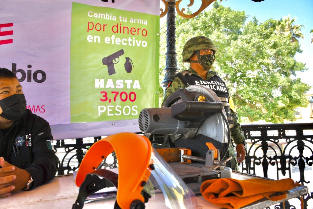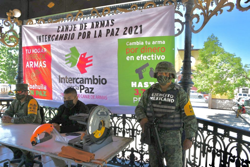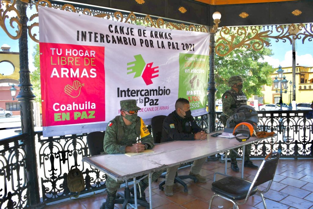 El programa estatal de canje de armas “Intercambio por la Paz 2021”, instaló este viernes un módulo en el kiosco de la Plaza de Armas frente a la Presidencia Municipal de Ramos Arizpe con un horario de atención de nueve de la mañana a dos de la tarde, de lunes a viernes.