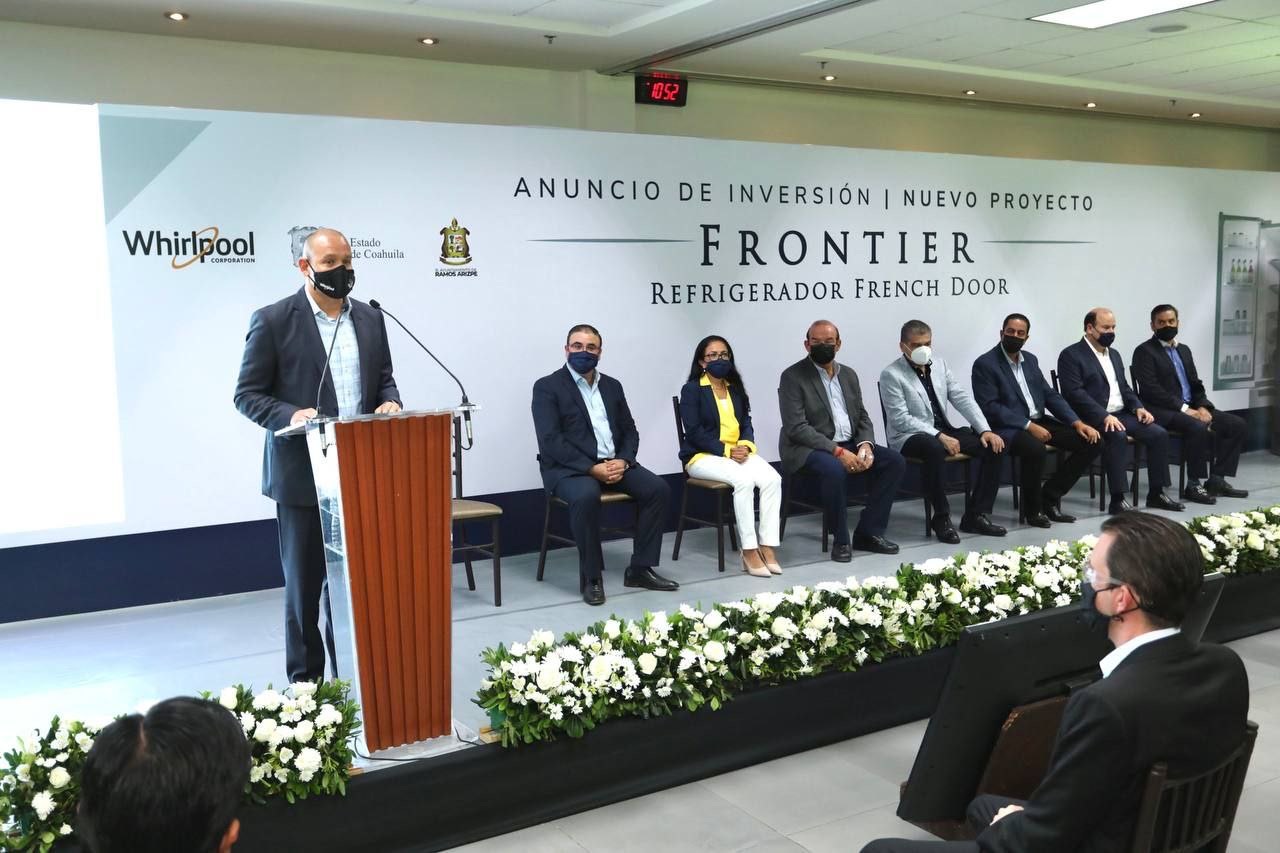 El anuncio se realizó durante la visita del gobernador de Coahuila, Miguel Ángel Riquelme Solís a las instalaciones de la planta ubicada en el Parque Industrial Santa María, en el que estuvieron presentes José María Morales Padilla, alcalde de Ramos Arizpe; Jaime Guerra Pérez, secretario de Economía; Susana Zazueta, directora de Whirlpool Planta Ramos Arizpe; Juan Carlos Puente, presidente de Whirlpool LAR Norte; Eduardo Elizondo Williams, vicepresidente de Operaciones de Whirlpool;  Ernesto Marcos, vicepresidente Jurídico y de Relaciones Institucionales de Whirlpool; y Manuel Aldrete, vicepresidente de Recursos Humanos de Whirlpool.