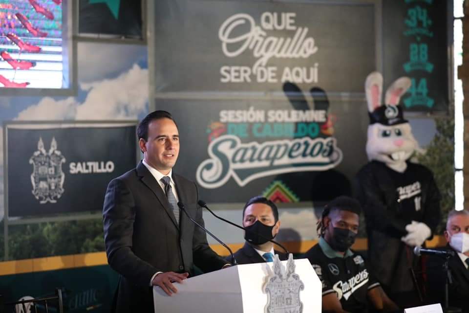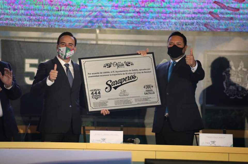El secretario del Ayuntamiento, Carlos Robles Loustaunau, compartió una reseña de los Saraperos, en donde recordó su origen hace 50 años, y sus principales logros, como el campeonato de 1980, así como el bicampeonato de 2009 y 2010 en la Liga Mexicana de Béisbol.  Incluso, señaló, que una de las versiones históricas afirma que Saltillo es la primera ciudad de México en la que se practicó este deporte, durante la ocupación del ejército estadounidense a mediados del siglo XIX.
