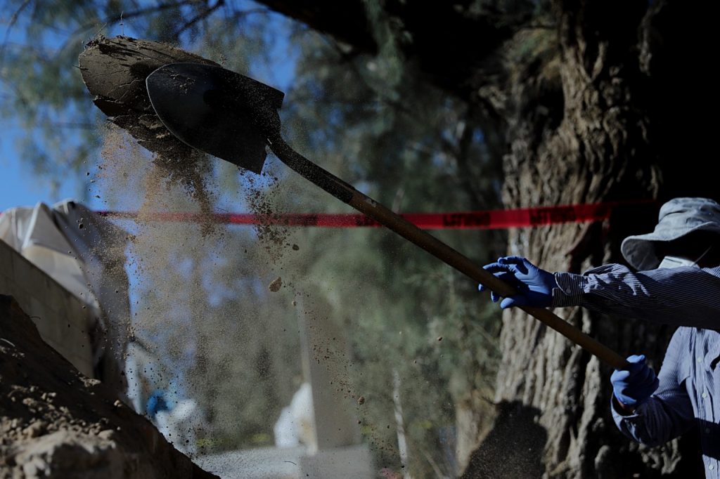 “Estas prospecciones, que son complementadas con una investigación documental, nos permiten ubicar dónde se encuentran las fosas dentro de los panteones y qué número de cuerpos se pueden advertir en esas fosas, para luego hacer una planeación y técnica de intervención del panteón”, explicó la Coordinadora General del CRIH, Yezka Garza Ramírez.