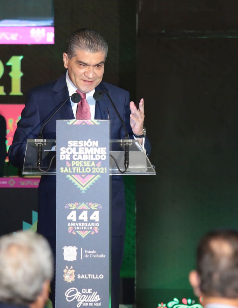 “Muchas felicidades a la ciudad de Saltillo porque llega a sus 444 años más fuerte, unida y con estándares de avanzada nacional”, enfatizó el gobernador Miguel Ángel Riquelme Solís.