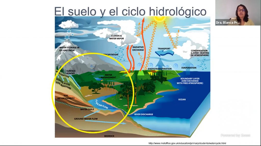Prado Pano explicó que los servicios ecosistémicos del suelo se refieren a aquellas contribuciones que ofrece la naturaleza y que hacen posible la vida en el planeta, los cuales van desde alimentos, fibras, biocombustibles, agua, productos farmacéuticos hasta la regulación de los ciclos del agua, del carbono y del clima, por ejemplo; finalmente los sistémicos culturales, o beneficios intangibles: el paisaje como inspiración.