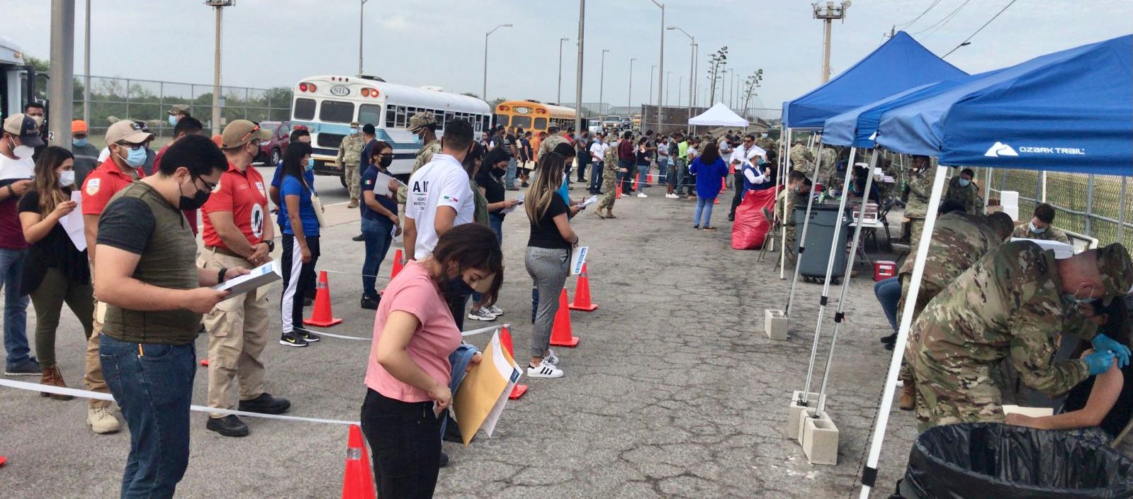 Ciudad Acuña, Coah; a 28 de Julio del 2021.- Con la meta de aplicar cerca de 6 mil 500 dosis contra el Covid-19 para las y los trabajadores de las industrias de los municipios de Acuña y Piedras Negras, inició este miércoles el proceso de vacunación en los puentes internacionales.