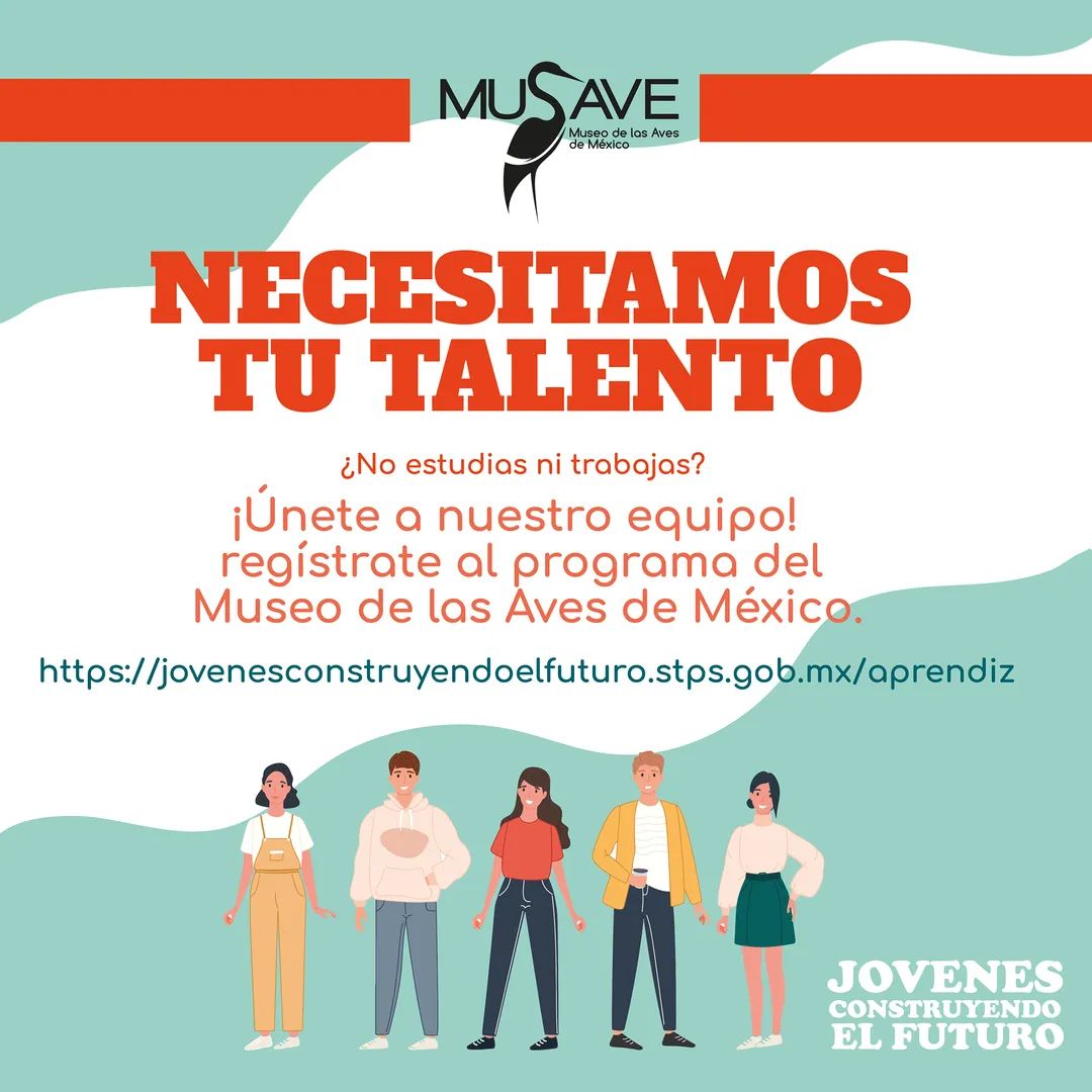 El Museo de las Aves de México (MUSAVE) emitió la convocatoria para los jóvenes saltillenses que por el momento no estudian ni trabajan, a fin de que se sumen al programa federal “Jóvenes Construyendo el Futuro”, al que se ha incorporado dicha institución donde los interesados podrán capacitarse en las áreas educativa, museográfica y audiovisual.