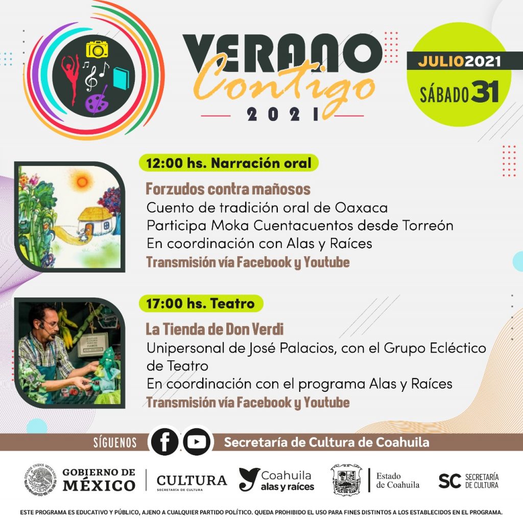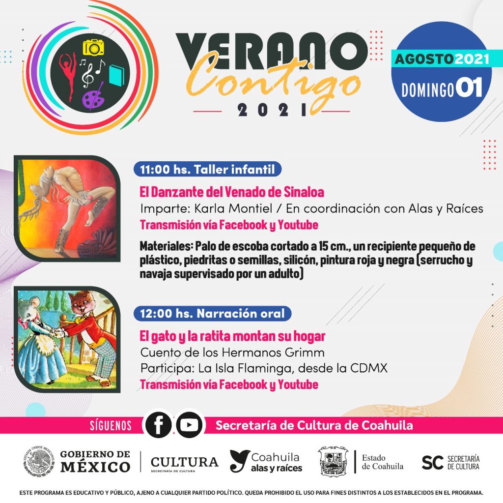 La dependencia estatal señaló que para la programación de “Verano Contigo” se cuenta con talleres, podcast de cuentos infantiles, cuentacuentos, obras de teatro y la página de descarga de libros para niños www.coahuilacultura.gob.mx/librosinfantiles