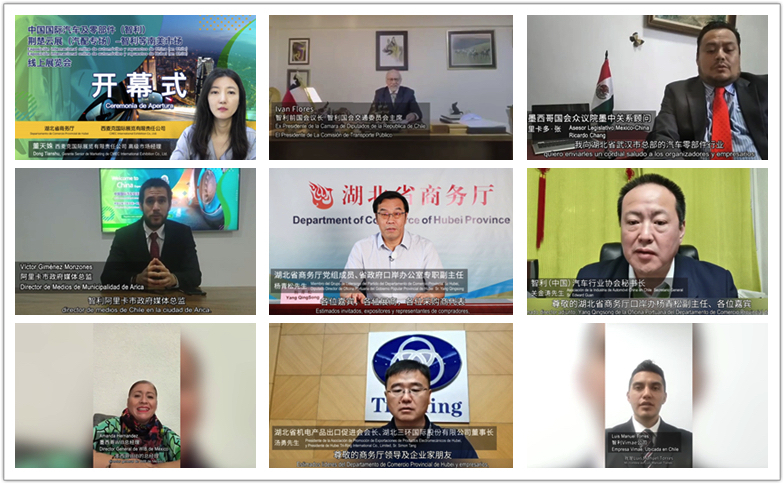 El 27 de julio, el Departamento de Comercio de la Provincia de Hubei de China y CEMC International Exhibition Co., Ltd. celebraron la ceremonia de apertura en línea de «Hubei Online Exhibition (Special Exhibition For Auto Parts)-Chilean And Other South American Markets». Después de la Exposición Internacional de Automóviles y Autopartes (Chile) y la Exposición en Línea de Hubei 2020, este evento es otra exploración en profundidad para promover la industria de autopartes para adoptar la inteligencia, acelerar la transformación digital y avanzar en el desarrollo de alta calidad de la industria. Ivan Flores, Ex Presidente de la Camara de Diputados de la Republic de Chile y EI Presidente de la Comisión de Transporte Público, Ricardo Chang, asesor de las relaciones México-China en la Cámara Baja del Congreso de México, Yang Qingsong, miembro del Partido del Departamento de Comercio de la provincia de Hubei y subdirector de la Oficina Provincial de Puertos, VíctorGiménez Monzones, director de medios de comunicación de la Municipalidad de Arica, Guan Jintao, secretario general de la Asociación de la Industria del Automóvil de Chile (China), Tang Yong, presidente de la Asociación de Promoción de la Exportación de Maquinaria y Productos Eléctricos de Hubei y presidente de Hubei Tri-Ring International Co, Ltd., Luis Manuel Torres de Vimae, representante de una empresa chilena, y Amanda Hernández de WIB, una empresa mexicana, asistieron a la ceremonia de apertura y pronunciaron discursos. Según las estadísticas, un total de 6.303 personas vieron la ceremonia de apertura.