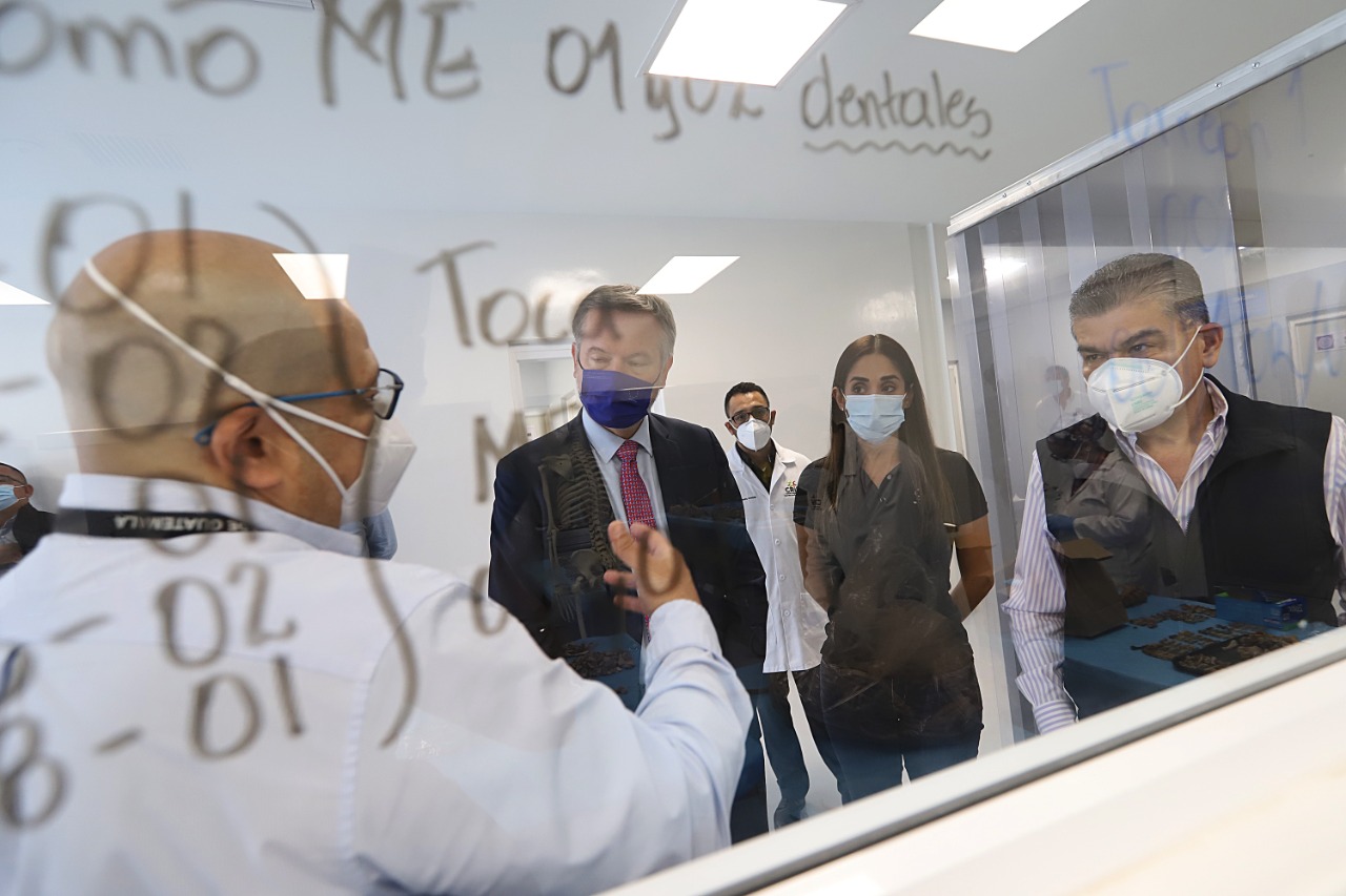 El gobernador Miguel Ángel Riquelme Solís, el Embajador de la Unión Europea en México, Gautier Mignout, y la Comisionada Nacional de Búsqueda, Karla Quintana Osuna, visitaron el Centro Regional de Identificación Humana (CRIH) de la Comisión de Búsqueda del Estado de Coahuila para supervisar el proceso postmortem que se realiza con los cuerpos recuperados de la segunda y tercera exhumación.