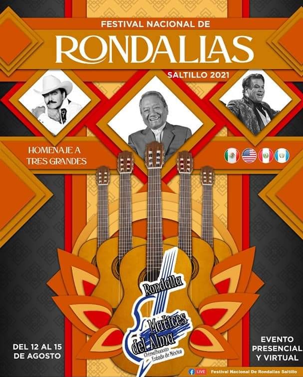 Todo está listo para que los días 12, 13, 14 y 15 de agosto se lleven a cabo las actividades del Festival Nacional de Rondallas Saltillo 2021, en el que se contará con la participación de 50 rondallas de Coahuila y otros estados del país, así como también de Estados Unidos, Perú y Guatemala, e incluirá presentaciones que se realizarán tanto de manera virtual como presencial.