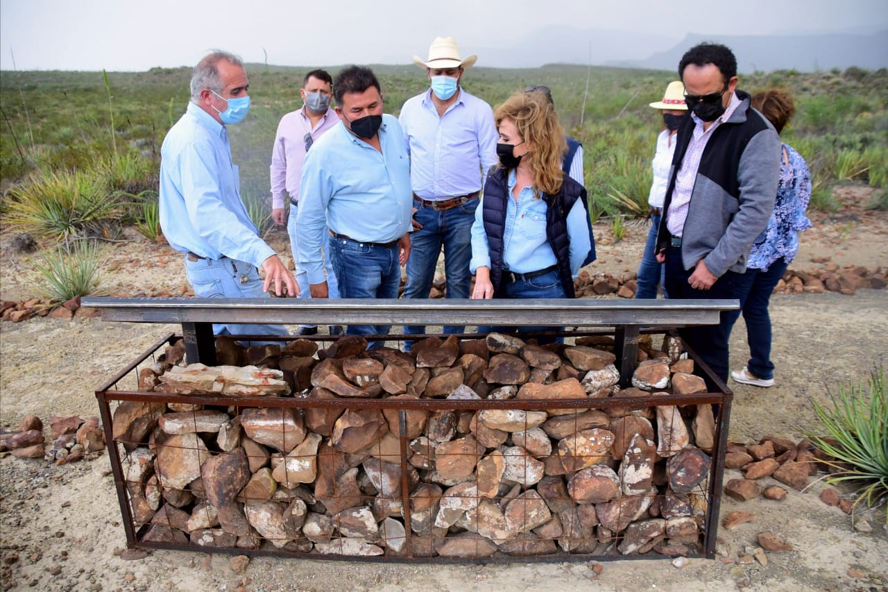 General Cepeda.- La Secretaria de Turismo y Desarrollo de Pueblos Mágicos del Estado, Azucena Ramos Ramos, visitó Rincón Colorado del Municipio de General Cepeda, acompañada del alcalde Juan Salas Aguirre; del Delegado del INAH en Coahuila, Francisco Aguilar Moreno, y de Felisa Aguilar Arellano, presidenta del Consejo de Paleontología del INAH.
