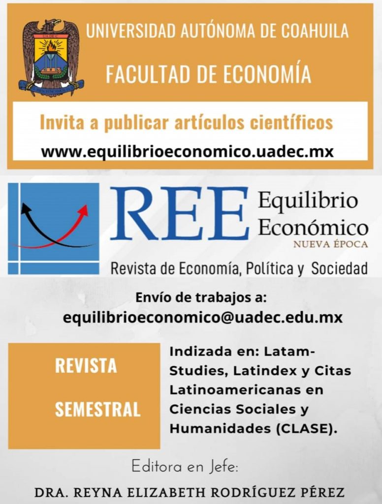 La Facultad de Economía de la Universidad Autónoma de Coahuila invita a la comunidad universitaria y al público en general a enviar colaboraciones para publicar en la revista “Equilibrio Económico”, la convocatoria estará abierta de manera permanente.