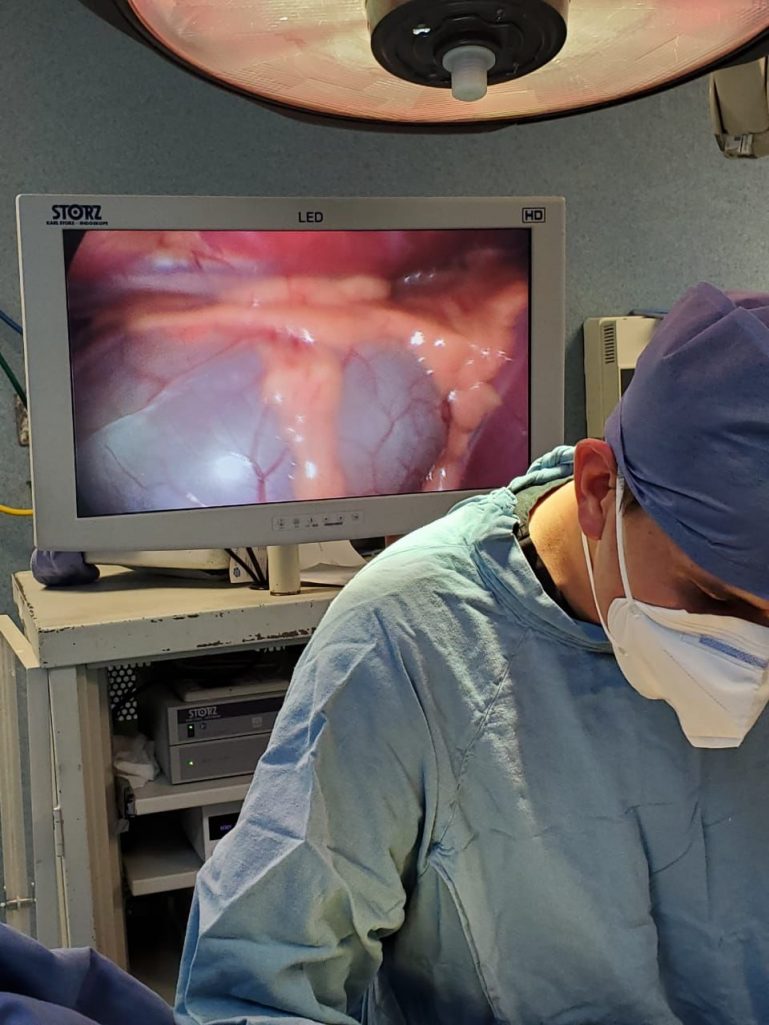 Como parte de la operación primero se introdujo una cámara con visión directa del corazón y pulmón para observar en donde colocaría la barra.
