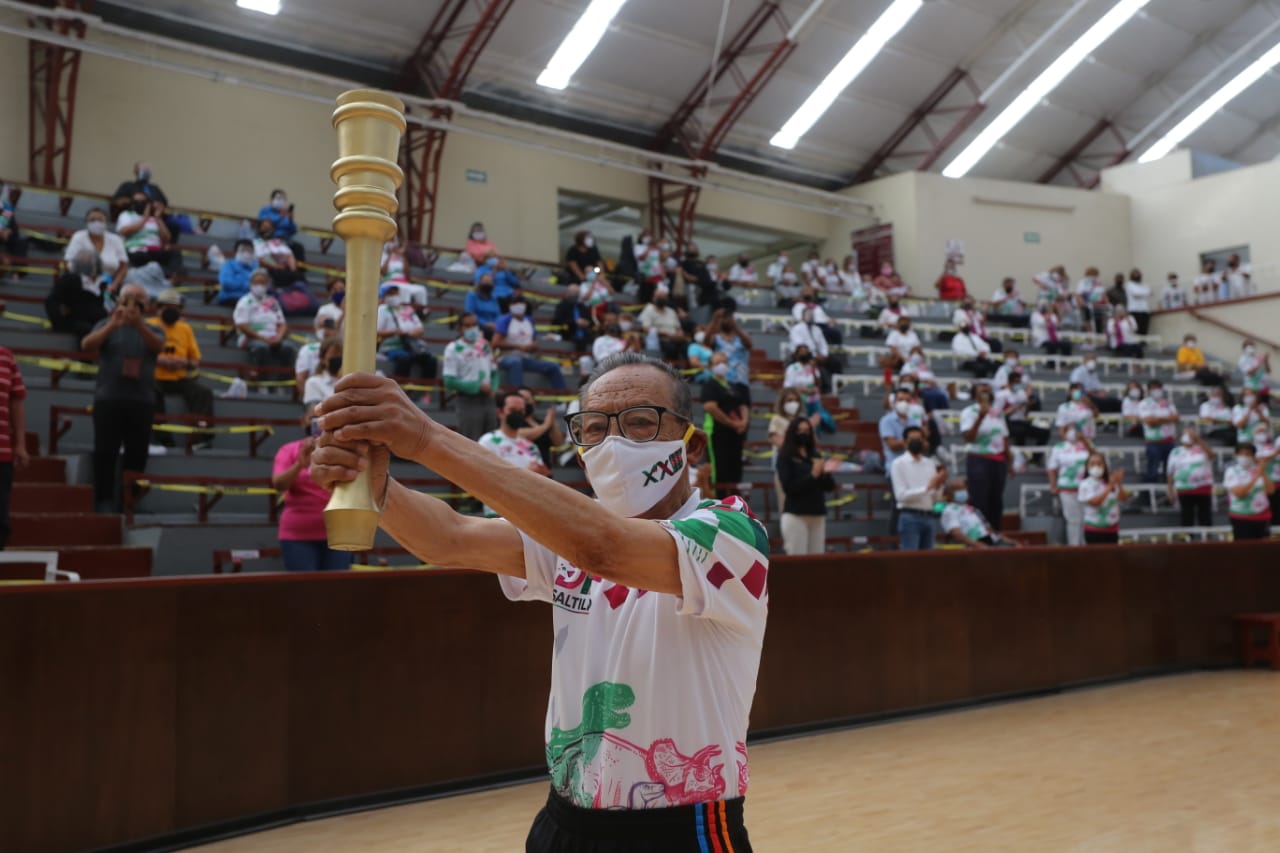 El encendido del pebetero se realizó por parte de Abundio Morelos Capetillo de 90 años de edad, campeón nacional en 100, 200 y 400 metros, leyenda del béisbol local y estatal y perteneciente al Club Lobos del DIF Saltillo.
