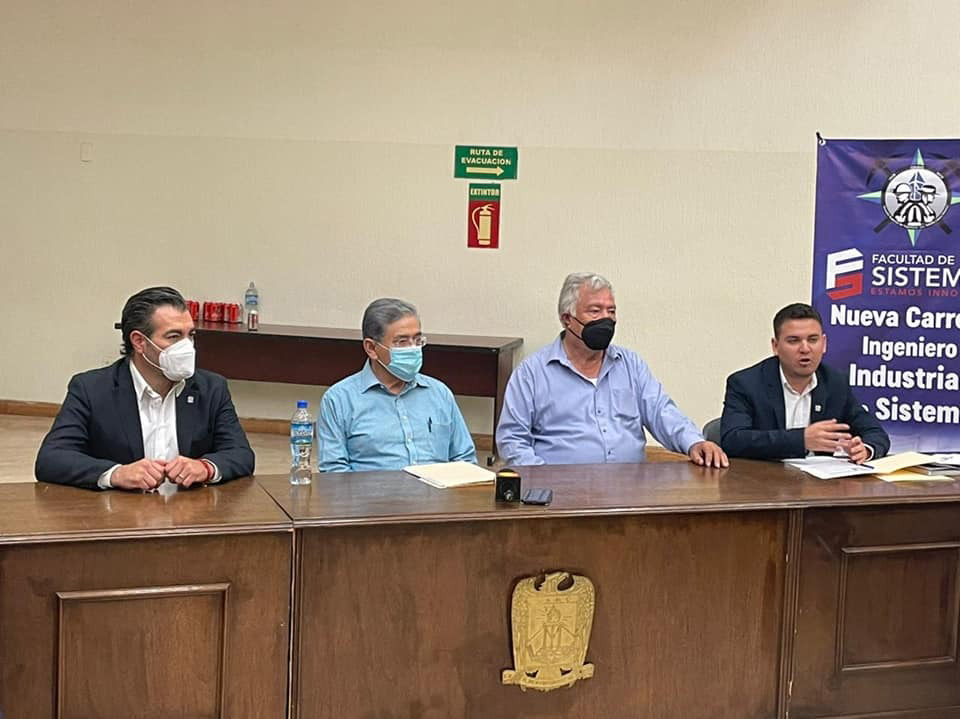 Así lo dieron a conocer el rector de la máxima casa de estudios, Salvador Hernández Vélez, el director de la Facultad de Sistemas, Rabindranath Galván Gil, el director de la Escuela Superior de Ingeniería, Juan José Guajardo Lara, y el Coordinador de Unidad Norte, Luis Carlos Talamantes Arredondo.