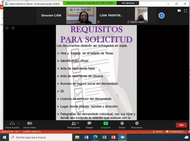 Blanca Estela Garza Guajardo, Coordinadora Regional del CJEM en Acuña, así como su equipo de trabajo, con su experiencia en la entrega de cheques de pensiones alimenticias a mujeres que residen en esa ciudad que otorga el Departamento de Protección para la Entrega de Cheques de Pensiones de Alimentos Internacionales de Consulado de México en Del Río, Texas, brindaron capacitación al resto del personal al interior de la entidad.
