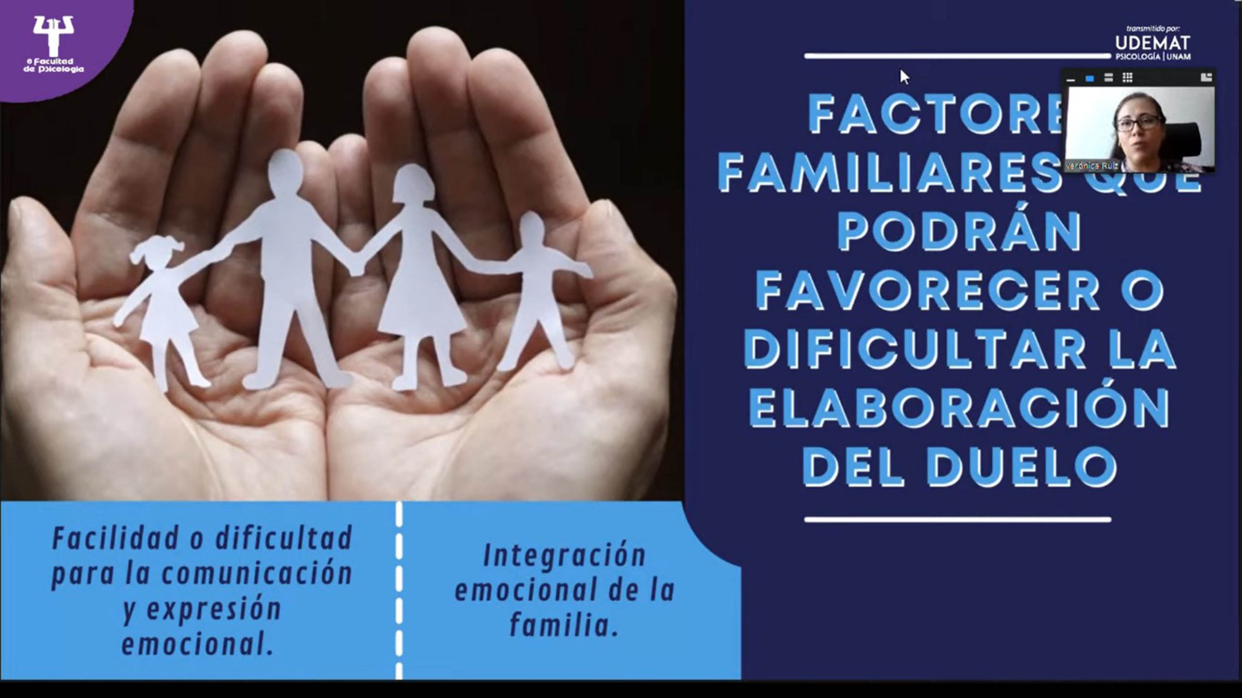 Indiscutiblemente, dijo, habrá ocasiones que ante la pérdida de un ser querido algunos necesitemos atención psicológica. En el caso de los niños, “cuando observemos comportamientos que obstaculizan su desarrollo, decaimiento, disminución en su desempeño académico, daño en su autoestima, la existencia de autolesiones, culpa y enojo exacerbados, sobre todo después de un periodo de seis meses de duelo, es necesario recurrir a atención psicológica”.