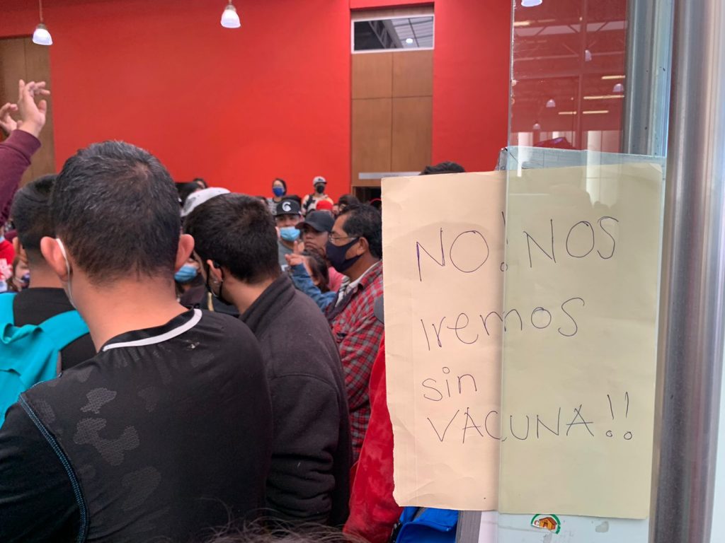 A los vacunados, les pide Reyes Flores que no lo publiquen en redes; y a los que se quedaron sin vacuna, los deja en la incertidumbre de cuando llegarán más