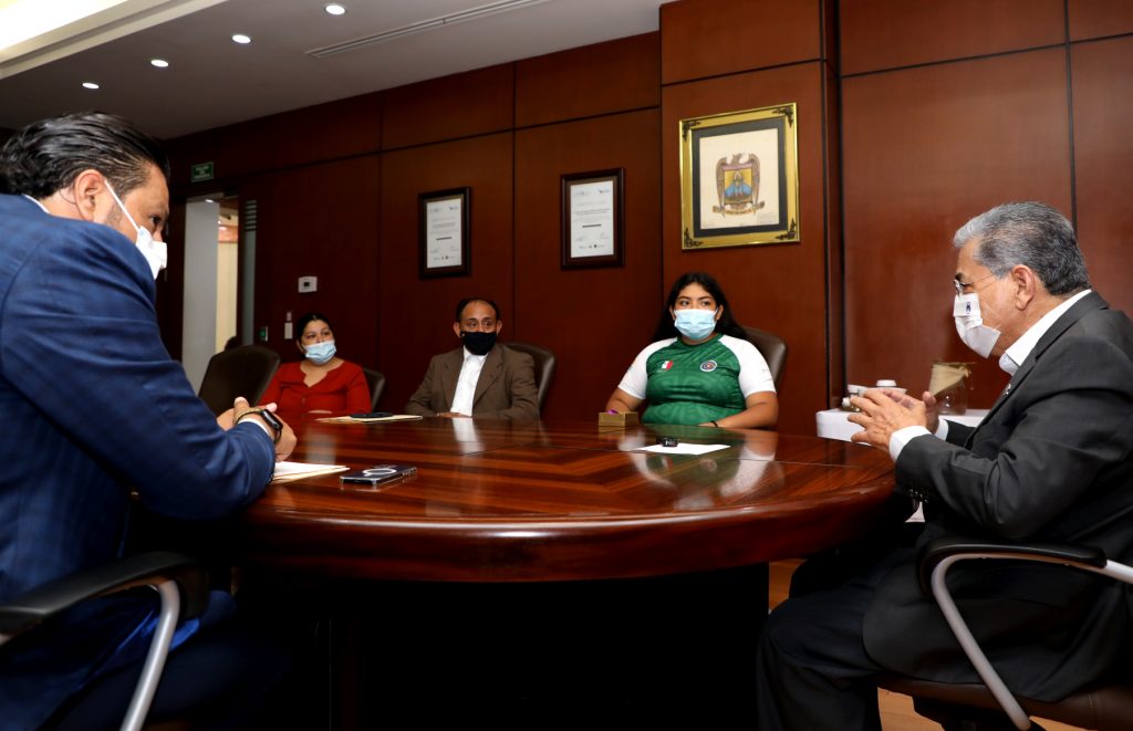 Durante la reunión también estuvieron presentes, el director de la Facultad de Ciencias Físico Matemáticas, Manuel Torres Gomar y el director del Ateneo Fuente, Marco Antonio Contreras Becerra; la joven arquera saltillense recibirá el 31 de agosto el “Premio Estatal de la Juventud 2021” por su mérito deportivo. (EL HERALDO)