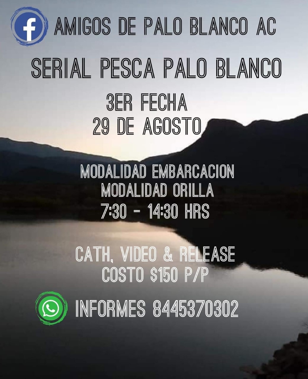 La presa Palo Blanco en Ramos Arizpe será sede por tercera ocasión en el año del torneo de ‘atrapa y libera’ (catch and release) que enfrentará a competidores de distintas regiones del estado, tales como la Sureste, Centro y Carbonífera el domingo 29 de agosto.