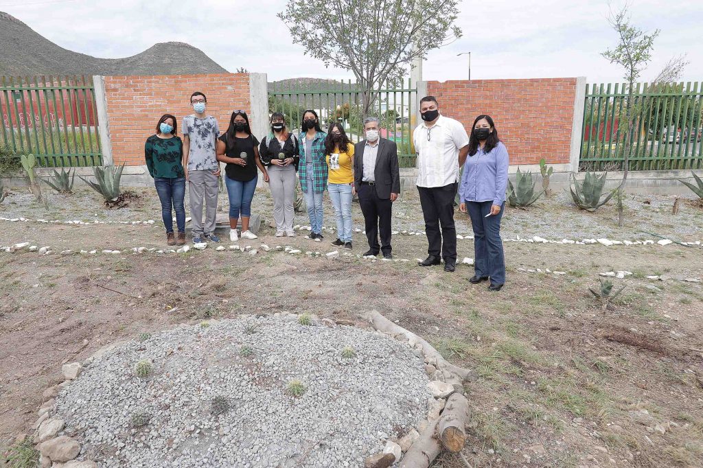 Por su parte, la Dra. Rebeca Casique, señaló que actualmente se está gestionando el apoyo de donaciones en especie a empresas del sector privado como AHMSA, Peñasquito y Peñoles, para la instalación de grava, arena, loza y más cactáceas, asimismo, agradeció la participación de alumnos de Servicio Social para la fase inicial del proyecto, la cual consistió en la limpieza y colocación de la flora en la zona.